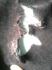 この画像は今年の素敵な思い出、都会のど真ん中ですっころんでビリビリになったパンツのひざ部分。